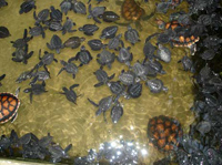 Five sea turtle species nest in Sri Lanka -- the green turtle (Chelonia mydas), olive ridley (Lepidochelys olivacea), leatherback (Dermochelys coriacea), hawksbill (Eretmochelys imbricata) and loggerhead (Caretta caretta). However, Sri Lanka's share of the global sea turtle treasure is declining, as clearly indicated by recent reports and observations (Dattatri and Samarajeewa, 1982; Hewavisenthi, 1991). Exploitation of sea turtles and their eggs continues all along the coastline year-round, despite the fact that all sea turtles and their eggs are protected by law. According to the Fauna and Flora Protection Ordinance, |